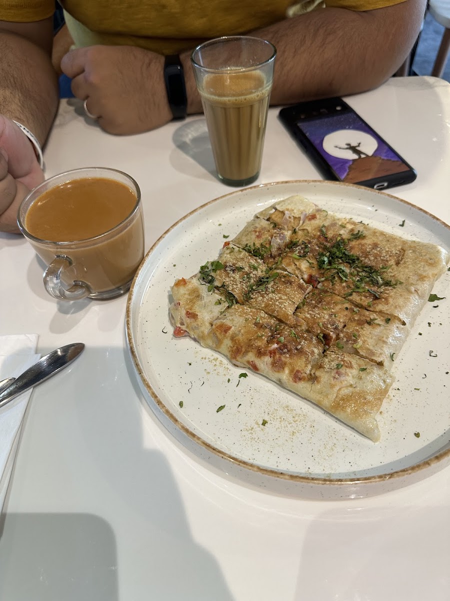As you step inside, you’re welcomed by a cozy ambiance, where the soothing aroma of brewed chai punctuates the air. Super Chai is designed to be an inviting space — a perfect blend of comfort and casualness, ideal for a quick pit stop or a leisurely afternoon with friends. Soft Bollywood tunes play in the background, creating a laid-back vibe that encourages relaxation and connection.